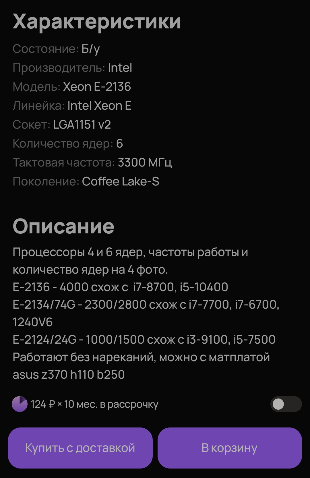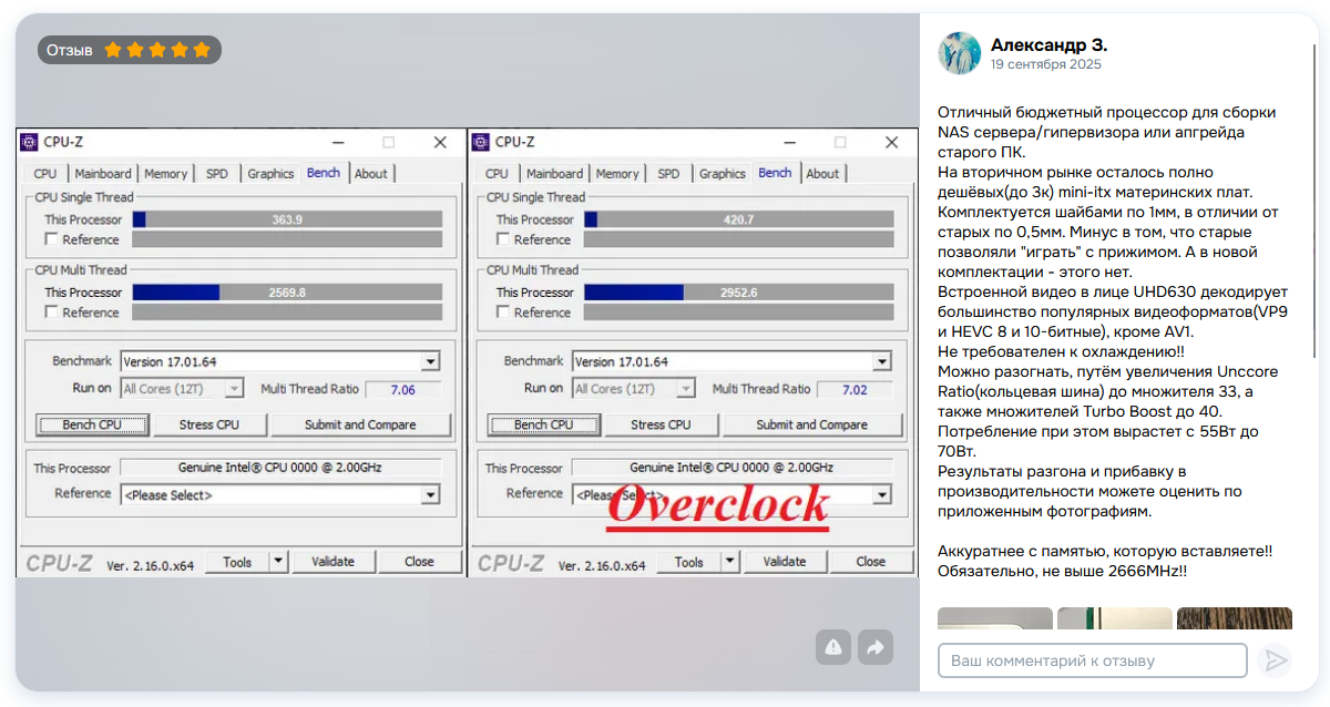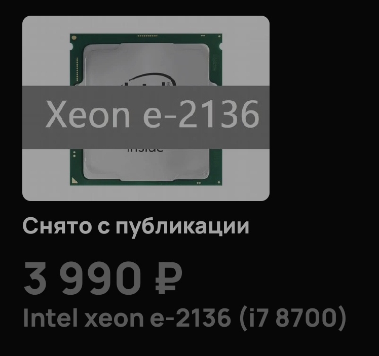 Для тех, кому по каким то причинам не нравится 1200 и 10400, есть варианты для 1151. Так на лохито стали всплывать 2136. Стоит от 4к. Примечателен довольно высокими частотами 4.2Ггц на все ядра, что всего лишь на 100 мегагерц ниже чем у i7-8700. Самый младший 6/12 кофизион. Проц без пинмода можно поставить в 1151в2, но модбиос нужен. На некоторые 1151v1 z170 платы от ануса для кофимода достаточно одной перемычки паяльником сделать. Ставить желательно на платы с более менее норм питальником. На н310/110 ставить бы такого не стал. В многопокпоке всего на 10% хуже cc150 (3.5x8 vs 4.2x6). Но однопоток лучше, в играх предположительный +- паритет. Стоит при этом ~1.5 раза дешевле. Возможно скоро и на алике появятся такие варианты, но это не точно. У чела с объявы было написано в наличии несколько. Но довольно быстро объява прикрылась. Либо все продал, либо у него и было их хуй да маленько. Продолжаю следить за кофи зионами.
