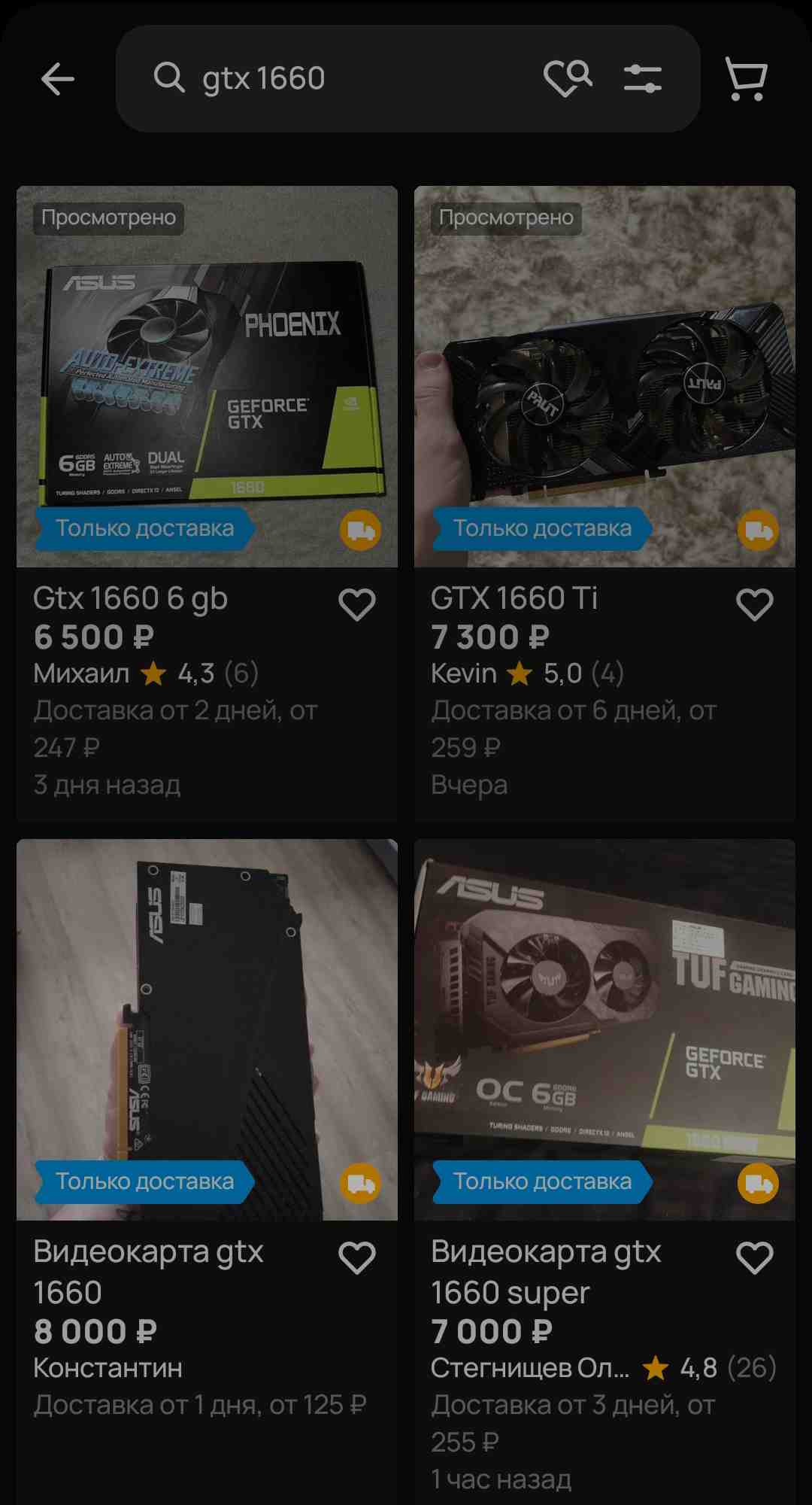 1. rx470 ME(1 dvi) за 2-2.5к, семейство гтх 1660(обычная супер и тиай) за ~10к(нужно уточнение), и rtx 3070 за 20к+