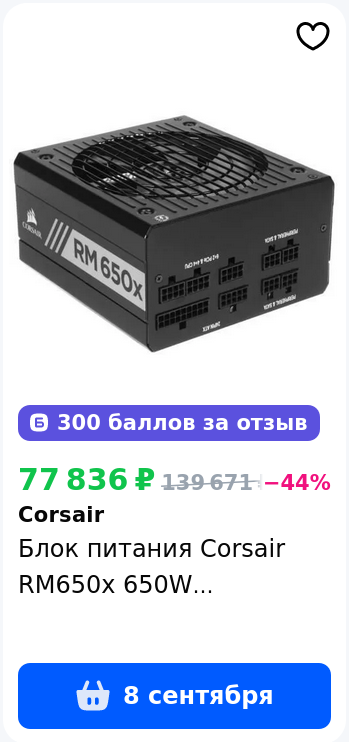 >>7518838 https://www.avito.ru/volgogradskaya_oblast_volzhskiy/tovary_dlya_kompyutera/cooler_master_mwe_500_white_7559068909 возьми вот этот бп если бюджет совсем в край в общем, тебе на авито нужны cooler master mwe v2 белый или бронзу, цены где то 2.5-3 рубля или dq750st за 3.5-4р, но тебе нужна ревизия с японскими кондерами в круг, там на коробке написано "10 лет гарантии" и "фуллджапан капаситорс" не спрашивай почему, я три архивных бп-треда прочитал, когда обосрался с покупкой одного бп ничего о них не зная, зато потом купил dq750st вообще выбор БП пожалуй самый важный когда комп собираешь, но, парадоксально, люди вообще хуй на это кладут, а потом страдают