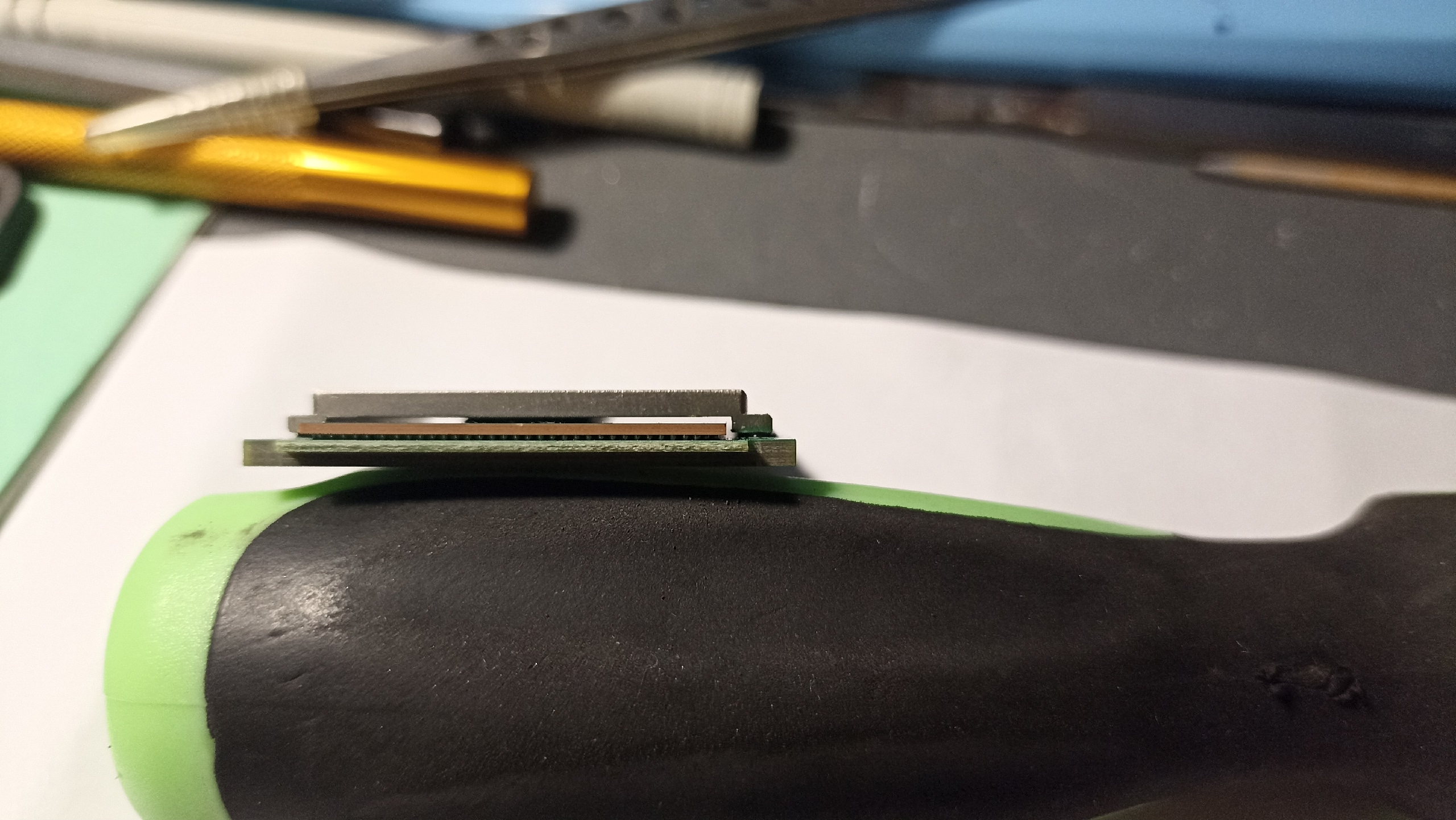 >>7491895 В принципе полностью разбирать не обязательно для запайки х16, карта не грелась, но хочется по красоте сделать. Карта грязная, радиатор не снимался, чип не ужаренный, прокладки только сильно потекли и от чего стали каменные, планирую еще сделать мод с бекплейтом.