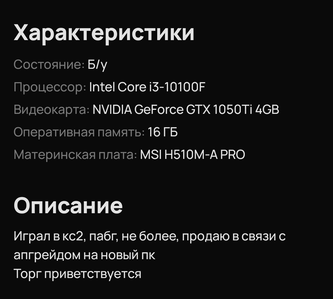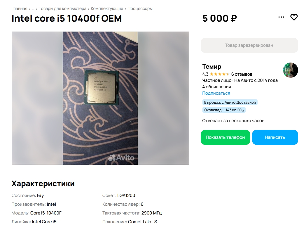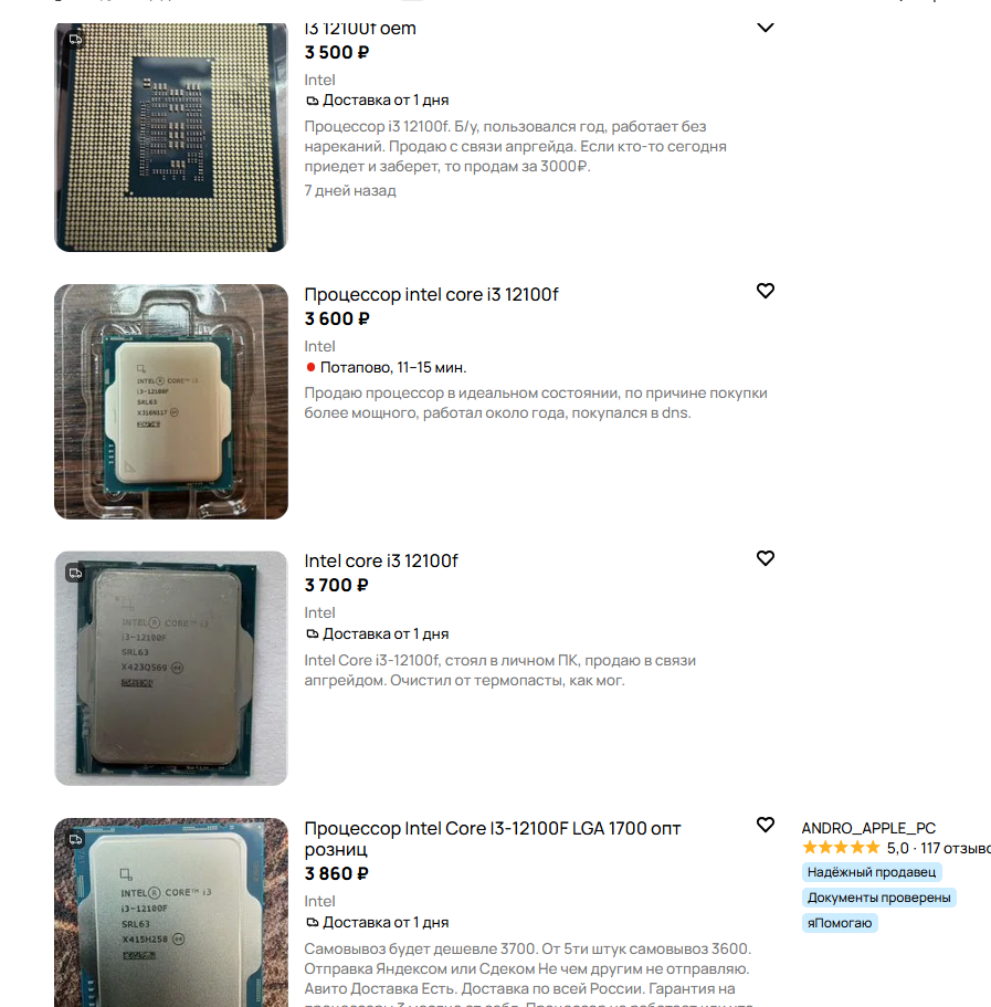 Так же и граница, будет определятся не чьим то желанием, а ценой реального железом, которое перестает быть бомжатским. Вот 10400ф\12100ф за ~10к комплект как раз то самое нормисовское железо, сейчас авито зафорсился так сильно, что это маркетплейс на уровне вб\озона, при условии, что буерешь у продавцов с высоким рейтингом.