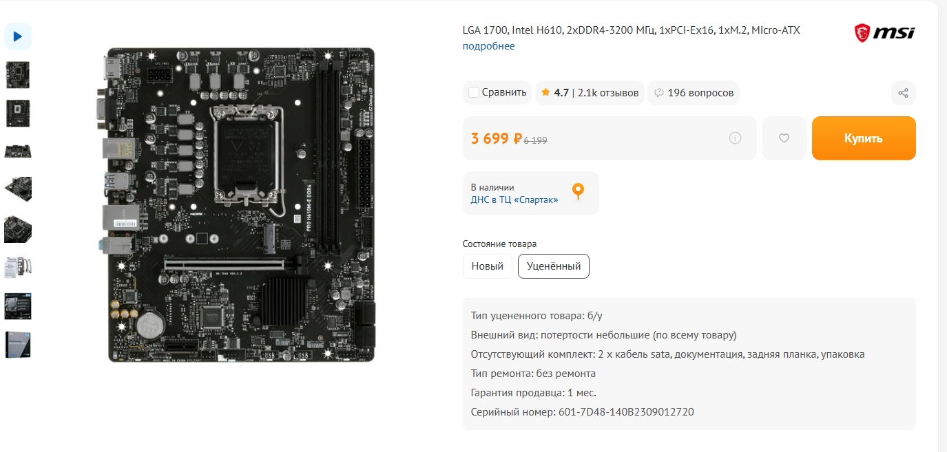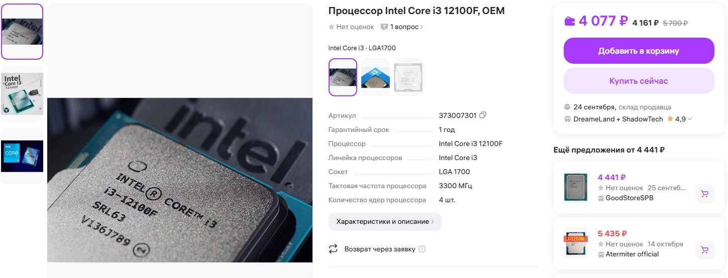 >>7516726 >>Так если уже купили, то значит купить больше нельзя. Неправильный вывод. Если купили - то это значит по таким ценам оно есть. И твой пост это подтверждает. Просто купили раньше тебя. Ну и твой пиздеж легко разбивается об объявления типа пикрил. Прямо сейчас доступно. Так что время кому то стирать штанцы. А если мониторить - то и за 4к не проблема найти проц.
