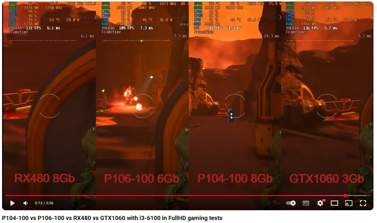 >>7513388 Некоторые онлайн с античитом, нужно специально проверять, т.к. многое пофиксили. И цмп40 хоть и ртх2070, но игры с требованием ртх дарк-дум и индиана не хотят запускаться. >>7513390 >P104-100 Пикрил. Чип мощнее, да, но линий пси-е всего х4 и больше не сделать, от чего фпс стабильно ниже чем у п106-100, но стоит и жрет она больше. То есть она тупо не нужна, без всяких но. >>7513425 >p106-90 Ты ошибся, она говно на х4. То есть всего 3 карты п106-100, цмп30 и 40. Причем если не допаивать кондеры в цмп30, то п106-100 будет лучше.