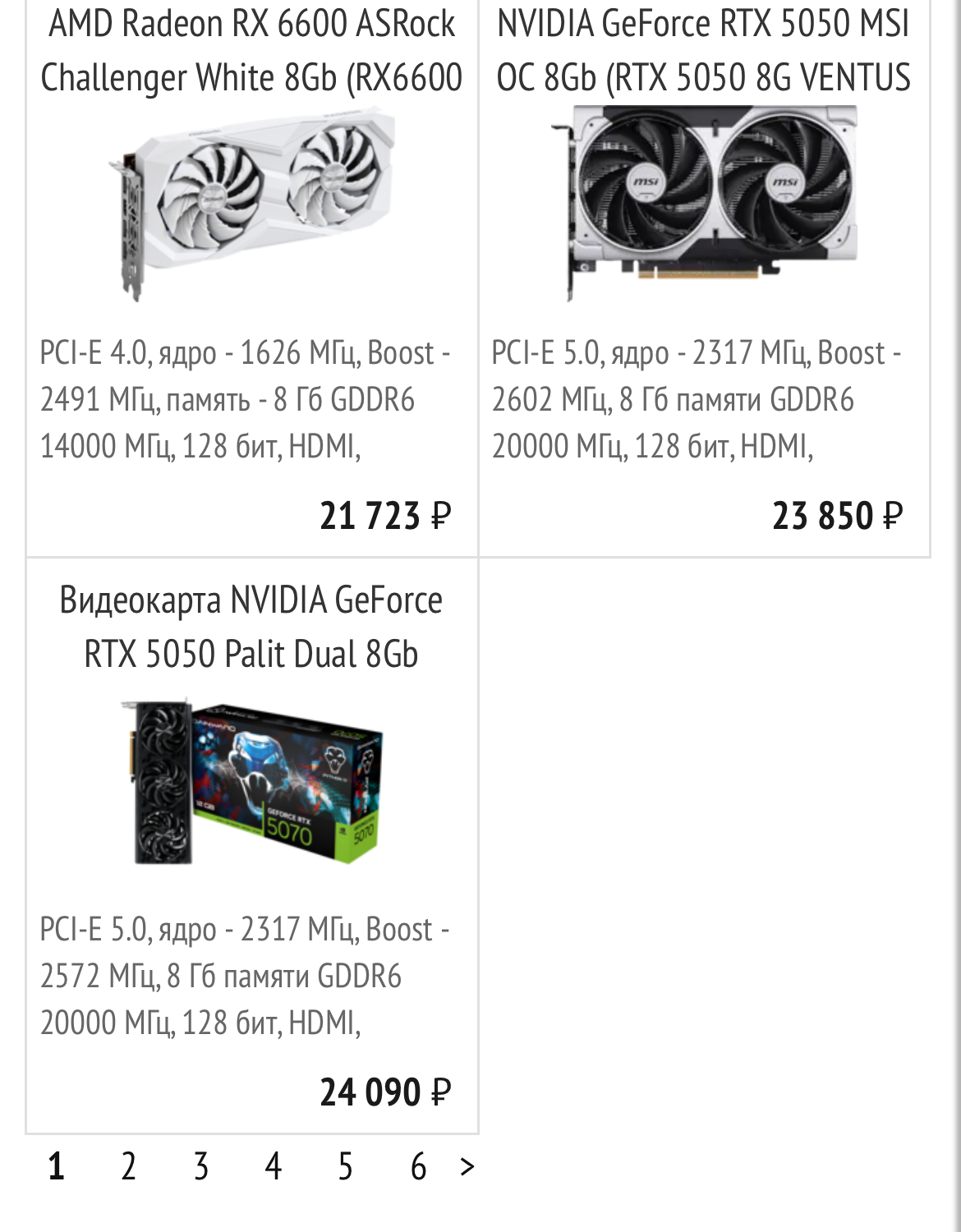 Сейчас в ситилинке есть только одна карта с 8 гигов памяти до 20к Видеокарта Sapphire AMD Radeon RX 6500XT 11314-08-20G RX 6500 XT Gaming OC Pulse за 19к, требует блок на 400 ватт