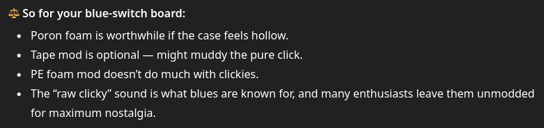 Хотел себе без причины щелкающую механическую клавиатуру, нашел на озоне б/у КСЯОМИ за 1,4к, ожидал, что придет какой-то треш, а мне прислали новую, просто коробка была примята. Если я туда внутрь напихаю шумки, звук как-то изменится, или синие свичи никто не звукоизолирует?