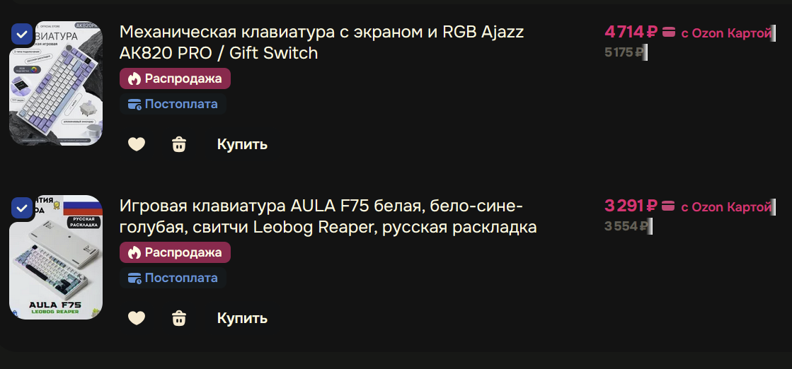 Но насчет замены кейкапов, двоякая ситуация как по мне. У некоторых клав же они прям под стиль всего корпуса и другие будут убого смотреться. + не хочется тупо часть того, за что я заплатил менять на другую, так же заплатив, тем более если родные будут хорошие сами по себе, учитывая, что у меня ещё и бюджет бомжа, собиравшего милостыню неделю.