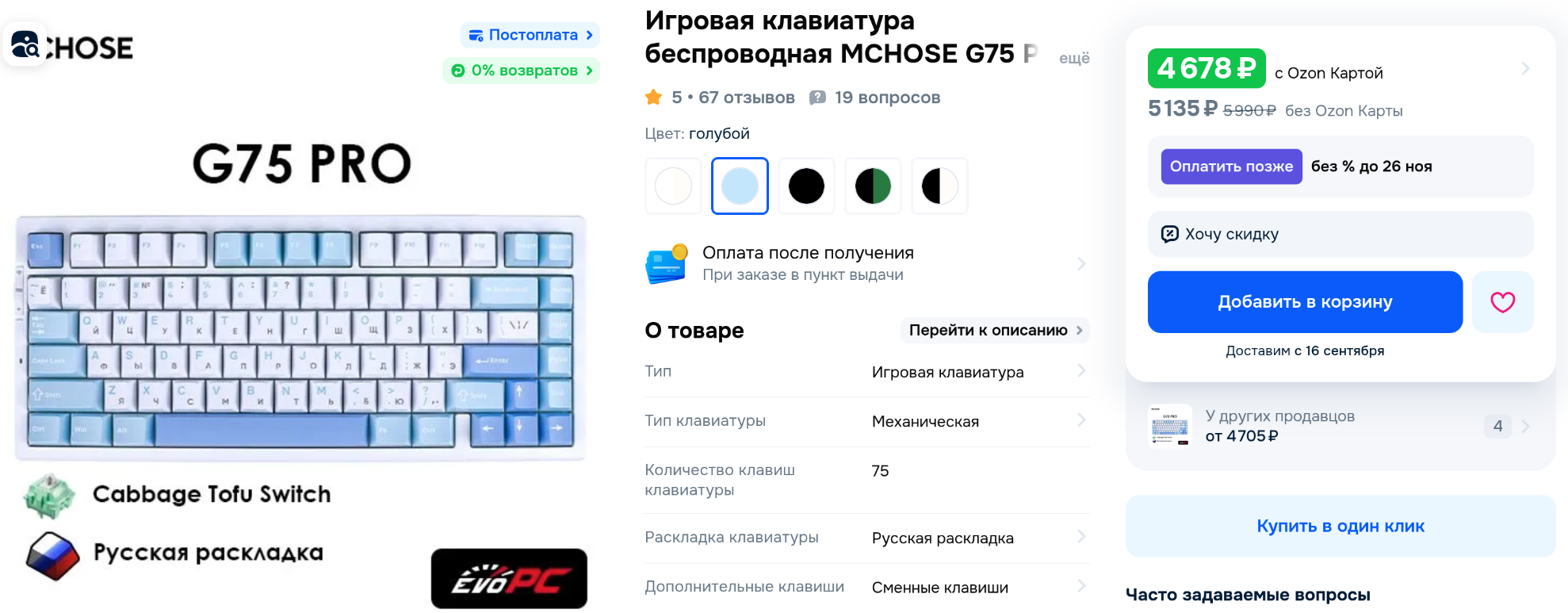 Базовый уровень знаний: https://habr.com/ru/post/140454 Лучшая клавиатура в пределах 6к: Dark Project = Aula = Ajazz = Epomaker = Leobog. Выбирай нужный форм-фактор, смотри что дешевле. Всё делается в одном подвале.