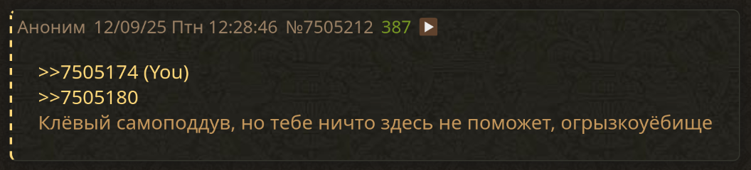 Спок. Этот >>7505487 пидарок реддитовский. Бесполезный слоп обрезков с гугл-картинок и реддита тут постит и типа задает местный тренд, типа "высокий уровень". Корчит из себя великовозрастную илитку. Пользы от него ноль. Рак и семен этого треда.