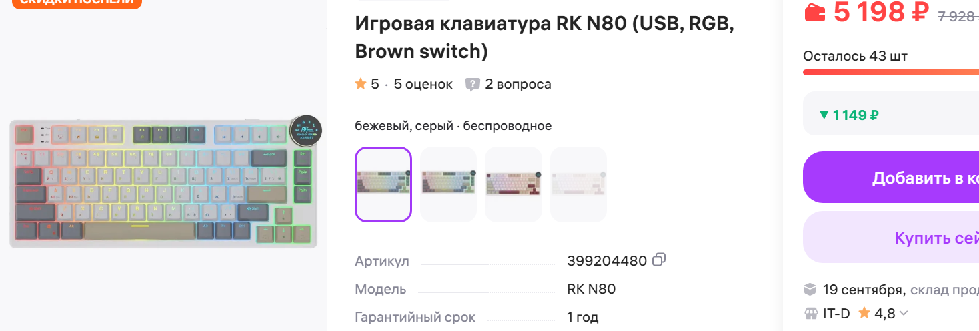 >>7504400 > Смотри лучше в сторону mchose, совершенно другой уровень и совсем немного дороже. А какие модели посмотреть? >>7504405 А у меня цена другая... Та где 67 отзывов пикрил цена