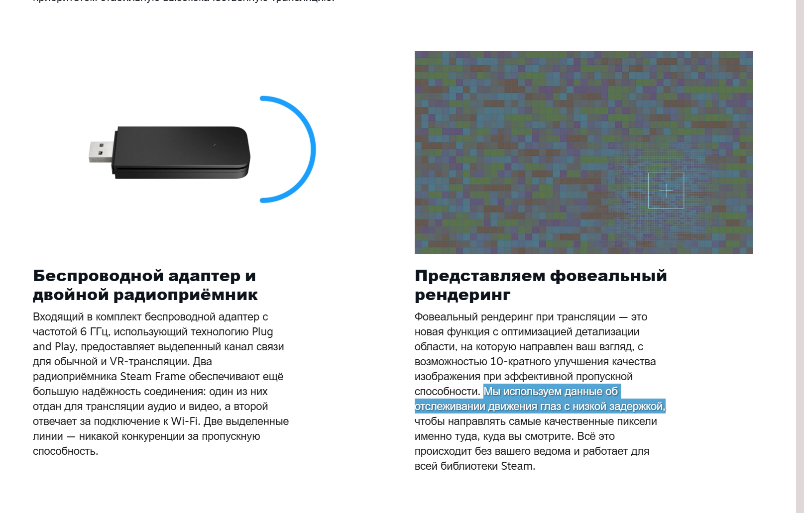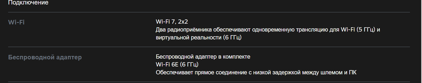 Способы подключения к ПК: Провод - просто подключил, приложение от шлема запустил, игораешь. В случае Пико/Квеста игораешь дольше без всяких доп. батареек. Но некоторые ухитряются путаться в проводах, хотя даже безо всяких подвесов к потолку особых проблем нет. Главное, чтобы на полу не валялся. Беспроводное подключение - это пердолинг: wifi6/6e/7 роутер купи, провод от пекарни дотащи, незанятый соседями диапазон частоты выдели. Потенциально беспердолинговыми выглядят только выделенные решения, но на текущий момент это либо сорт вайфай роутера (адаптер к Valve Index), либо мыло вместо разрешения + ценник (адаптер к HTC Vive). Посмотрим, что получится у Pimax, но адаптер будет несовместим с crystal light.