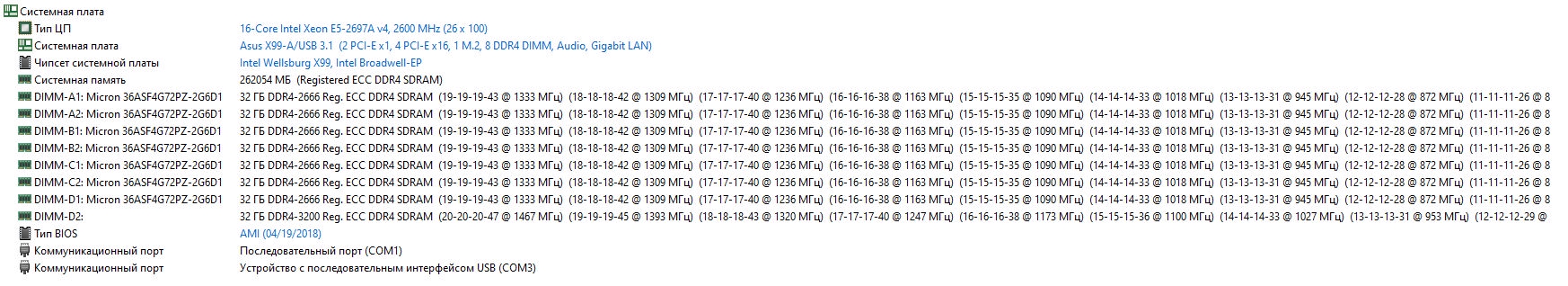 Вы же мне доказывали, что настоящий X99 может максимум в 128гб. А кто-то говорил что вообще REG память не запустится. Тогда откуда у меня 256гб REG ECC? D2 криво отображается, все 8 планок одинаковые