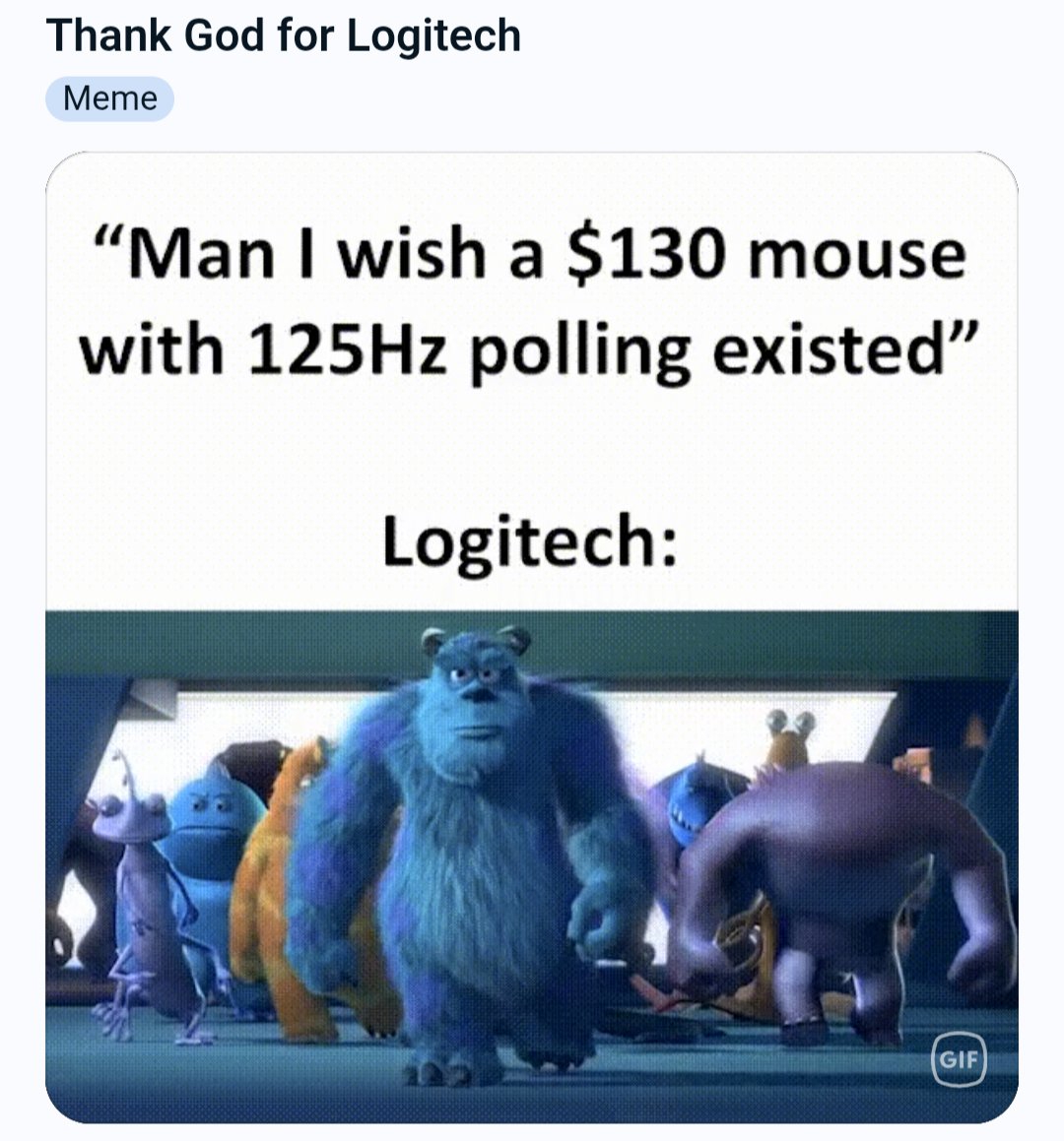 >>7530935 >>7530939 >>7530958 Эта. т Там в наличии в магазине еще за 5ка тоже от логитех была ну я самую дешевую взял. Вот только я не думал что она такая маленькая и еще думал если провод мешаться не будет скил вырастит. Ну мне полюбому ее менять первый беспровод слишком мелким оказался