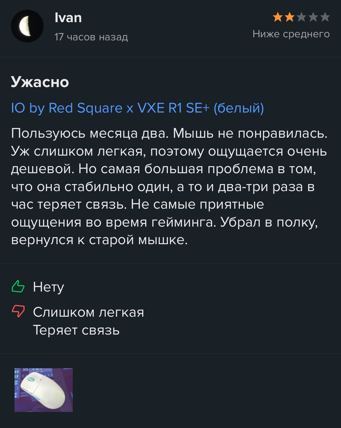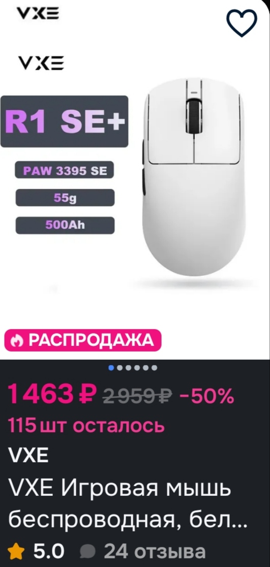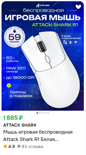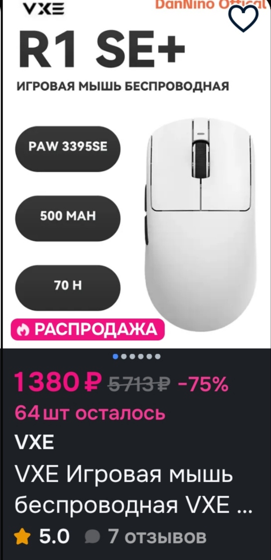>>7527109 У меня сейчас VXE R1 SE+ 500mAh. Не нравится колесо и боковые кнопки, а так в принципе всем устраивает, просто хочется что-то новое, с другой формой, вдруг зайдет. А если не зайдет - то пох, продам.