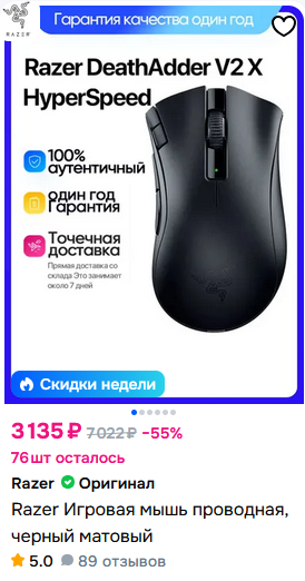 >В продаже из нового только DeathAdder V2 X HyperSpeed получается? Да, последний тот самый дезадер, даже жалко, что ничего современного не сделали с этим корпусом
