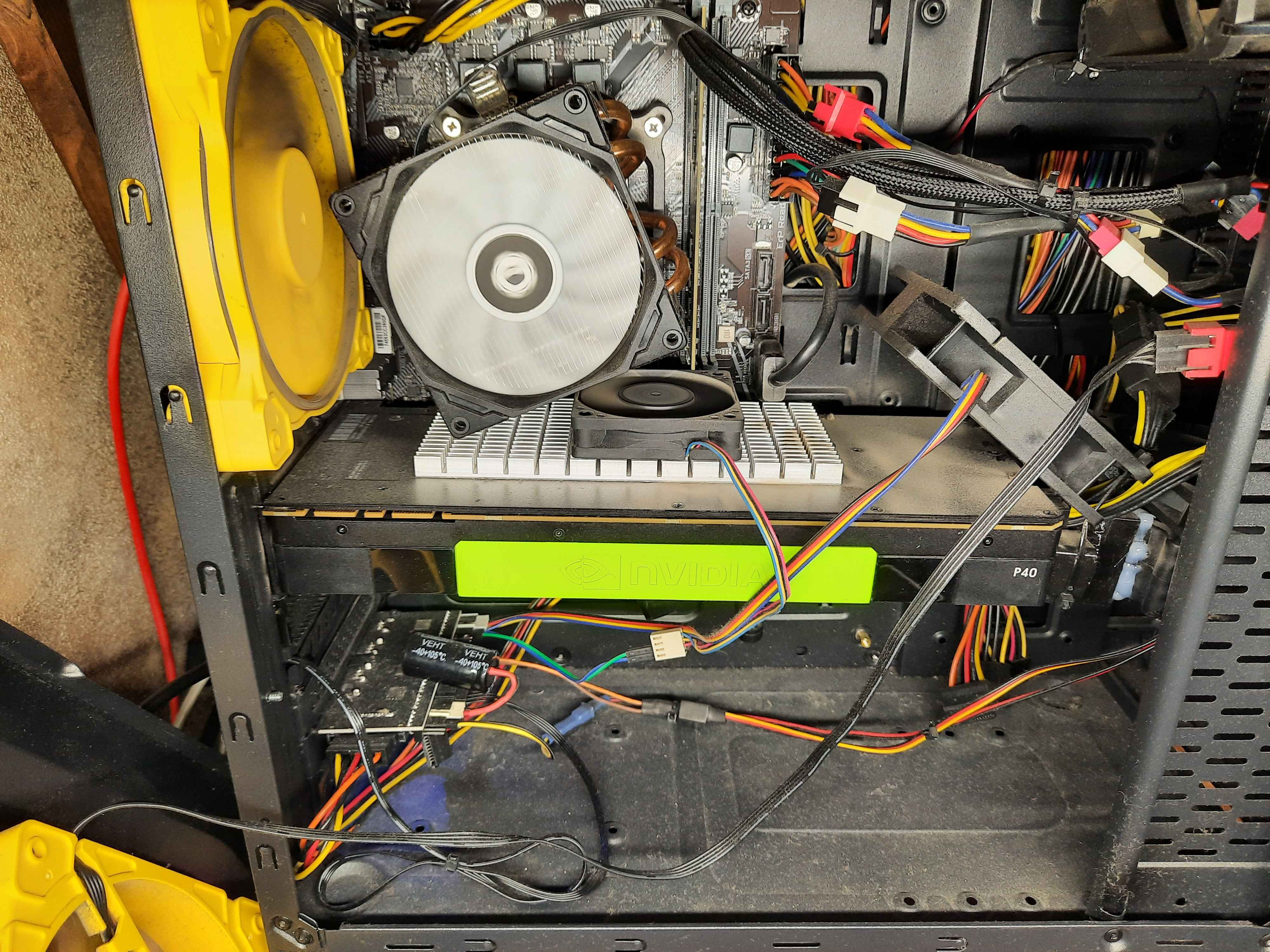 Понадобилось x16, проц без видимоядра, но картинка нужна. Ждать 2400 с китая нехочется, поэтому доработалась 8400gs из под деда до x1 дифф линию приема пришлось переносить. Радиатор взят с какой-то другой карты (сточил с одной стороны). Лоу профайл с какой-то x10-й, чтобы в 2u запихнуть. да, жрет как целый n100