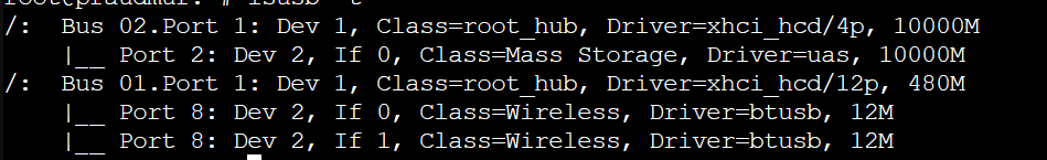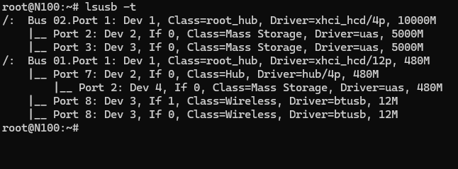 >>7540753 >Так вот, подключаю DAS через USB-A(3.0 версия)-Type-C - максимальная скорость около 40-60 мб на запись. Type-C это форм-фактор. За ним может скрываться usb 2.0 в твоем мини-пк. Сделай lsusb -t и посмотри, куда у тебя все подключено. На мини-пк обычно несколько usb сидят на одной шине. Пикрил - мой н100. К нему подключен 2х2,5 сосодистабильно выдают 1гбит/с на чтение или запись и hdd 3,5 в похожем у тебя кейсе. Видно, что всего 2 шины, на которые посажена куча usb. При этом, у меня только одна шина 10гбит разведенная на 2 по 5гбит. Куда, как раз, подключены ссд. А вот хдд подключен в 480М шину, т.к. на его скорость похуй. >DAS подрублен к роутеру через кабель Так у тебя, блять, он к мини-пк подключен или к роутеру? Если к роутеру, зачем нам ебешь мозги? Там роутер может дрочить или сеть твоя. > Type-C кабель поменять, у меня может 2 сломанных? У тебя может быть 2 кабеля стандарта usb 2.0. Купи нормальный кабель от Ugreen какого-нибудь.