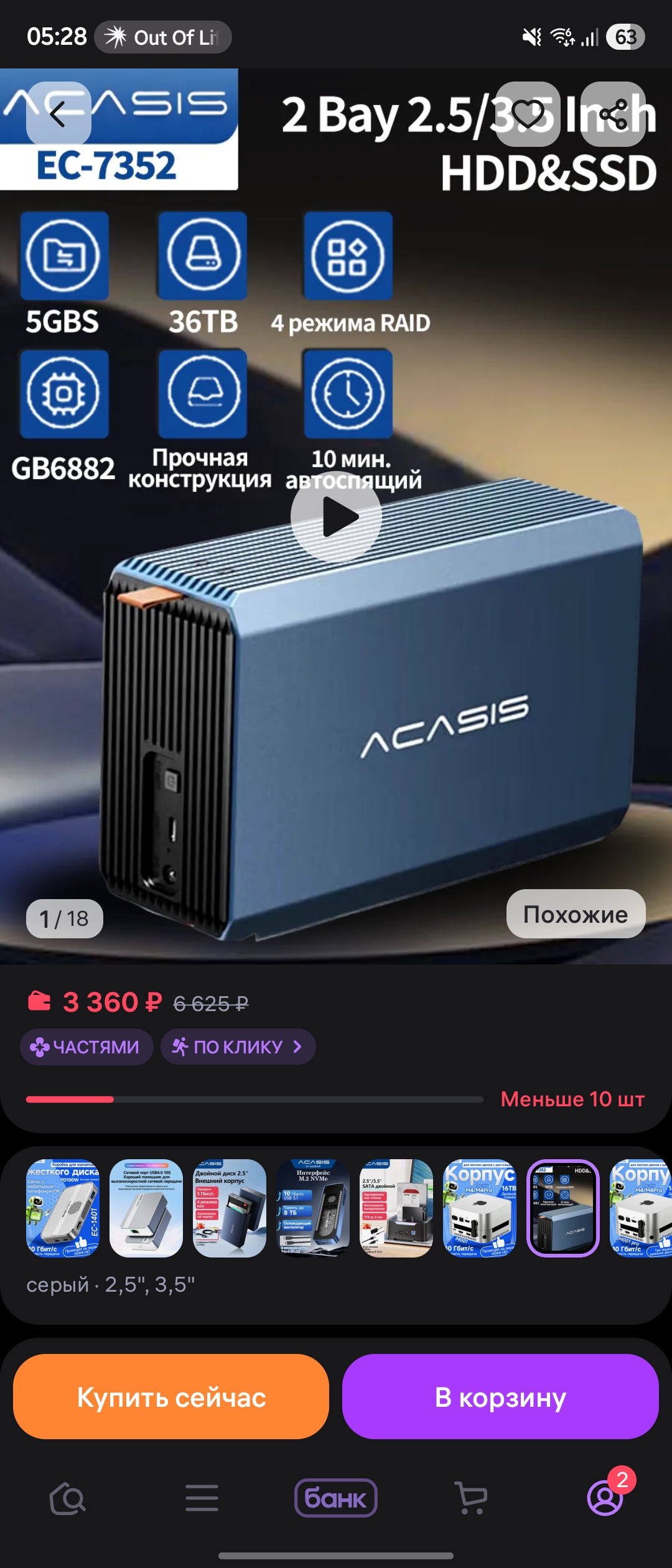 К нему приобрёл DAS Maiwo K35272C, чтобы поставить туда 2 ЖД. Один из ЖД - Toshiba DT01ACA100(пишу на него всю инфу)