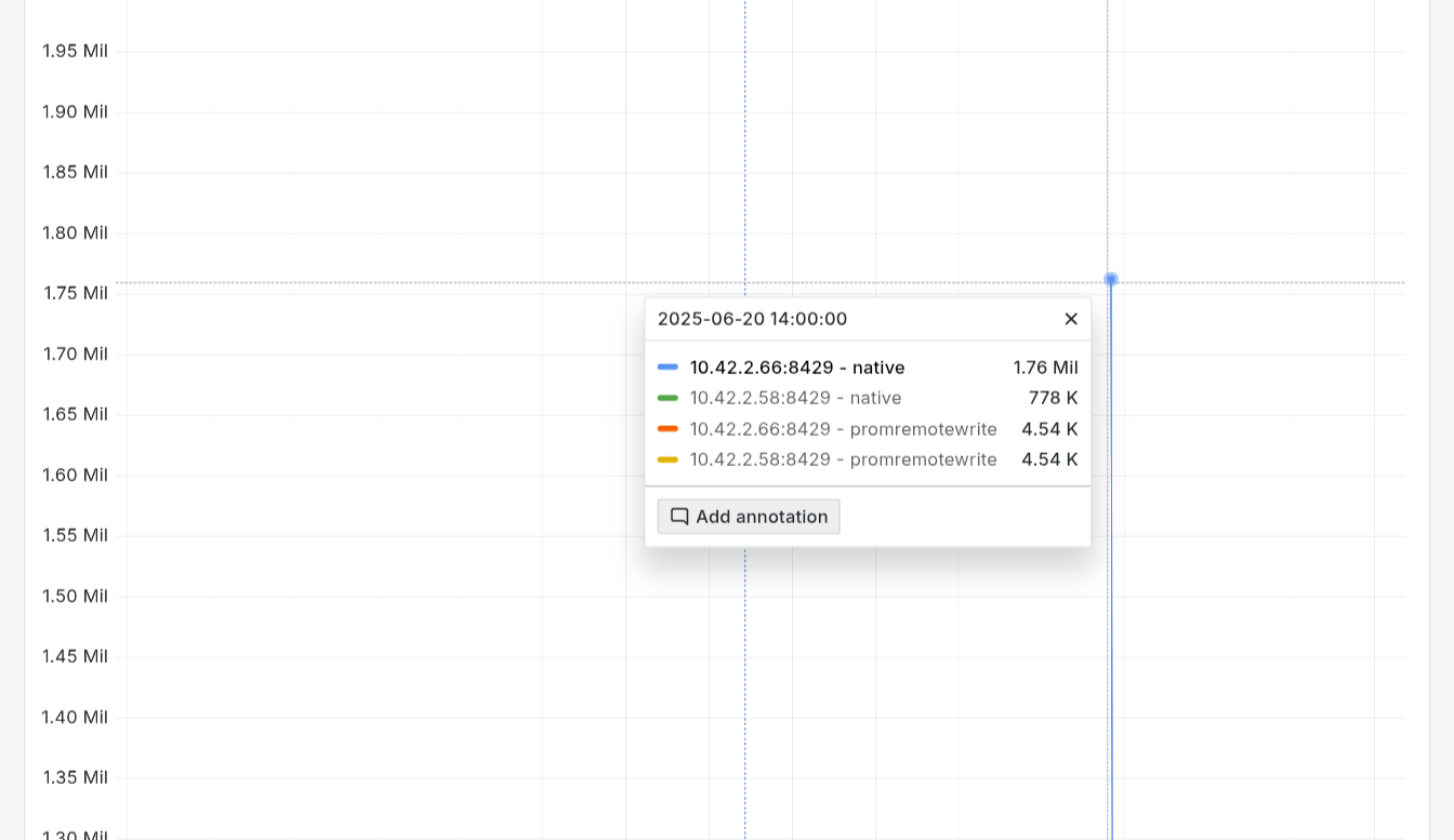 >>7544767 >Но там деление на инжест и лтс Ну да, я тоже самое делал, но в лонг-терм обычно складывается с меньшей периодичностью, интересен ретеншн основного Оперативно мериться писюнами и скриншотами не смогу, т.к. внедрял всё это дело годы назад, где-то что-то лежит, но надо искать (что лень) По производительности, кстати, у нас вышло наоборот лучше чем прометеус, это я уж молчу про горизонтальное масштабирование (и отключаемый wal в отличии от прометеуса в remote_write режиме) Но да, дома это всё нахуй не нужно, как и кластерная версия.