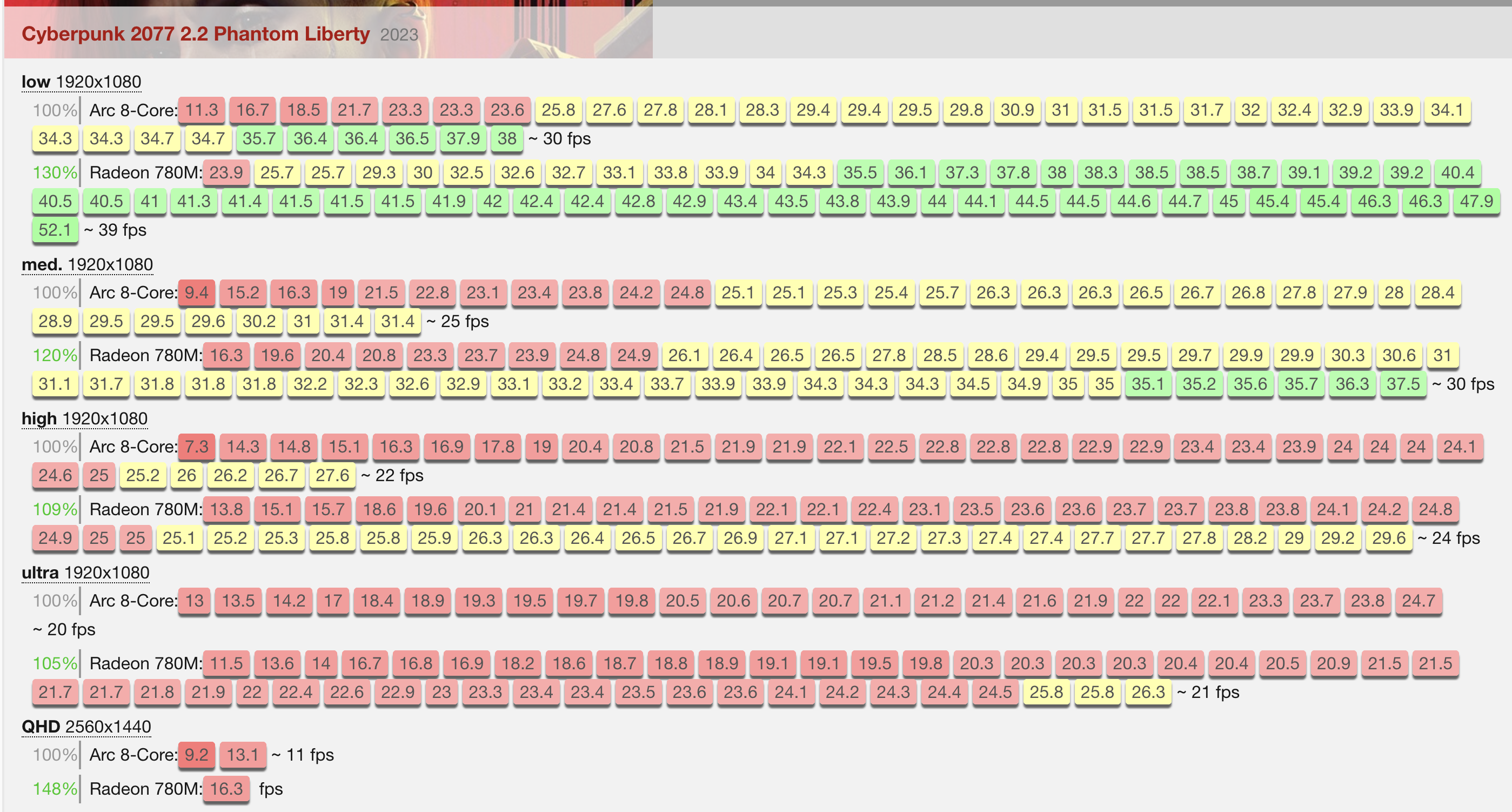 На самом деле неиграбильно в современных играх ни на той ни на другой. 1060 тоже нихера не тянет. Только 780m+ и intel arc из встроек кое что вытянут за счет апскейлинга.