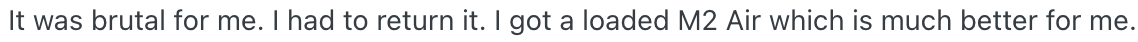 >>7534669 На ledstrain есть люди, испытавшие негативный опыт с Air M2 и новее. Я хочу попробовать более редкое устройство, т.к. на Air я всегда смогу перейти - на авито выбор велик, если меня не устроит Pro 13. Я пользовался непродолжительное время Air 15, без настройки дисплея под себя, и не могу точно сказать, что у меня не будет дискомфорта.