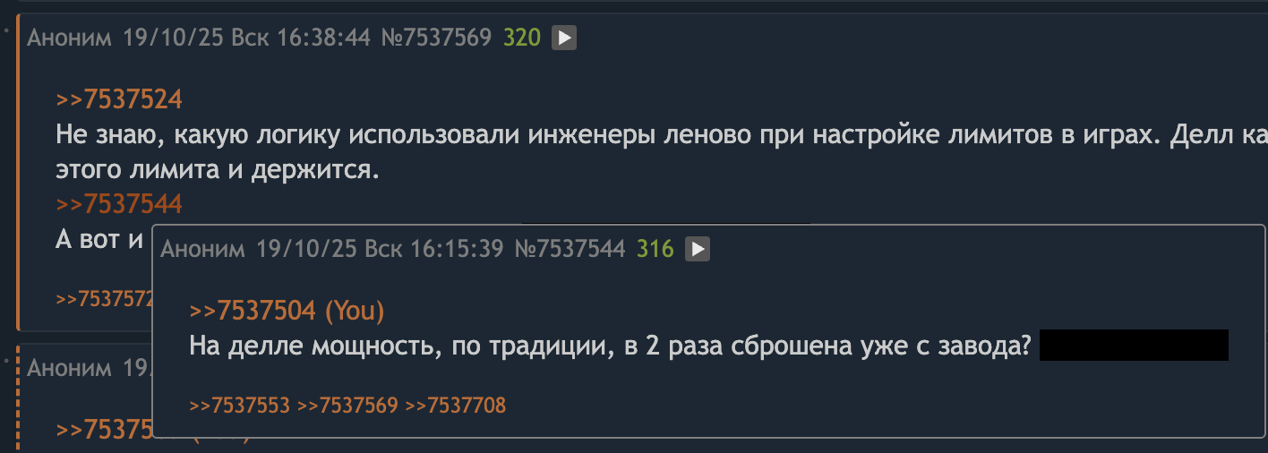 >>7537524 Не знаю, какую логику использовали инженеры леново при настройке лимитов в играх. Делл как начинает с 90+ без троттлинга, так в районе этого лимита и держится. >>7537544 А вот и еще один инвалид на зрение да и в целом на голову.
