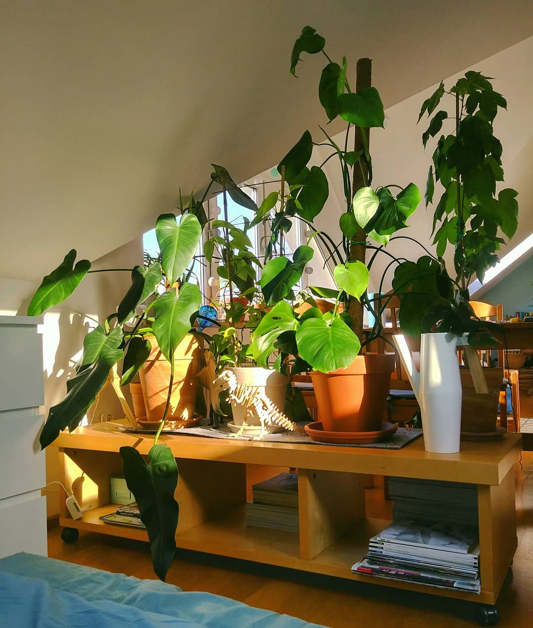 Ну и рейт мои обновления. Добавил ковер на стол, так как обоссали за его отсутствие в прошлый раз, и действительно, так получше. Лианка разрослась и я начал направлять ее на светильники (я их алсо сам из бетона отлил, зацените), надеюсь что со временем у меня будет зеленый потолок