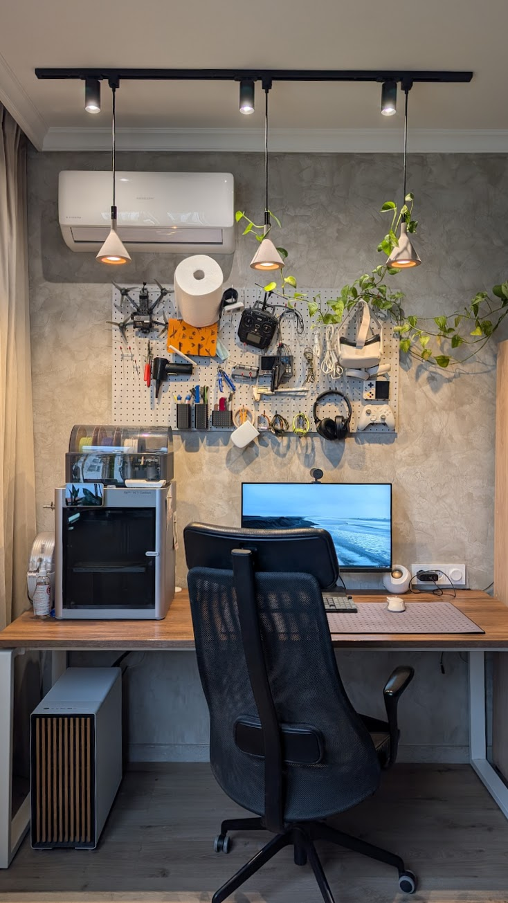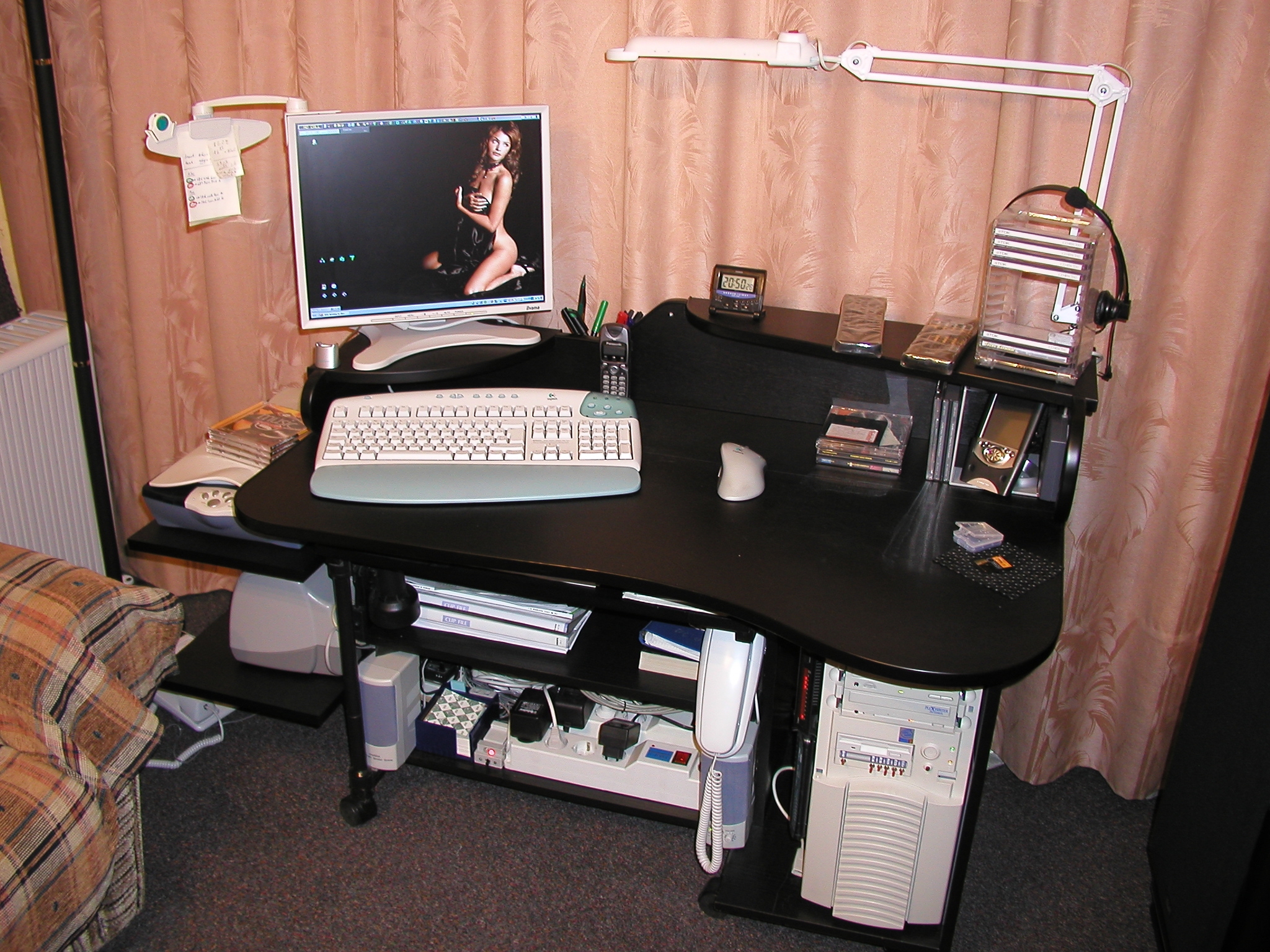 Но зачем он - непонятно. Если деньги есть, то есть и куда поставить большую башню, которая должна бы быть максимально тихой и удобной. Причем вряд ли особо декоративной, для этого другие предметы есть. Когда начинаются эти нагромождения вокруг стола, как на пике, то это просто кричит об отсутствии кабинета. Если денег нет, то и ценник негуманный слишком, да и корпус не самый практичный.