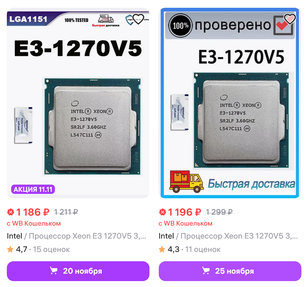 4\4 со встройкой, 1225v6 за 1.2к, а так же i5\i3(4\4) за ту же цену + видеокарта п106-100 и цпм 30