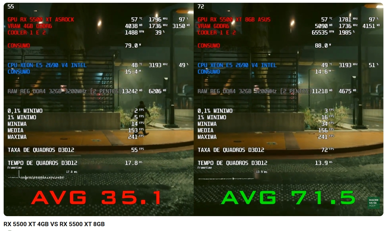 >>7555516 Цена это главная проблема 5500хт. Если за 4к получится найти - заебись, чётко, но таких предложений почти нет, перекупы моментально забирают. >Чип 5500 хт быстрее 588 Чип лучше, но в некоторых играх 588 быстрее тупо из-за 8 гигов. Кингдом кам2 например, там полный посос всех 4г карт >В память врам возможно уперлось. В остальном разница не столь заметна. И да, вот так показывает себе 6500 в киберпунке с тухлым железом(qtj2, 2400 озу) - гораздо хуже чем у смр на таком же конфиге. Возможно 5500 4гб будет лучше в киберпанке, но тут хуй знает. Жаль я уже продал свою 6500, прогнал бы в других играх