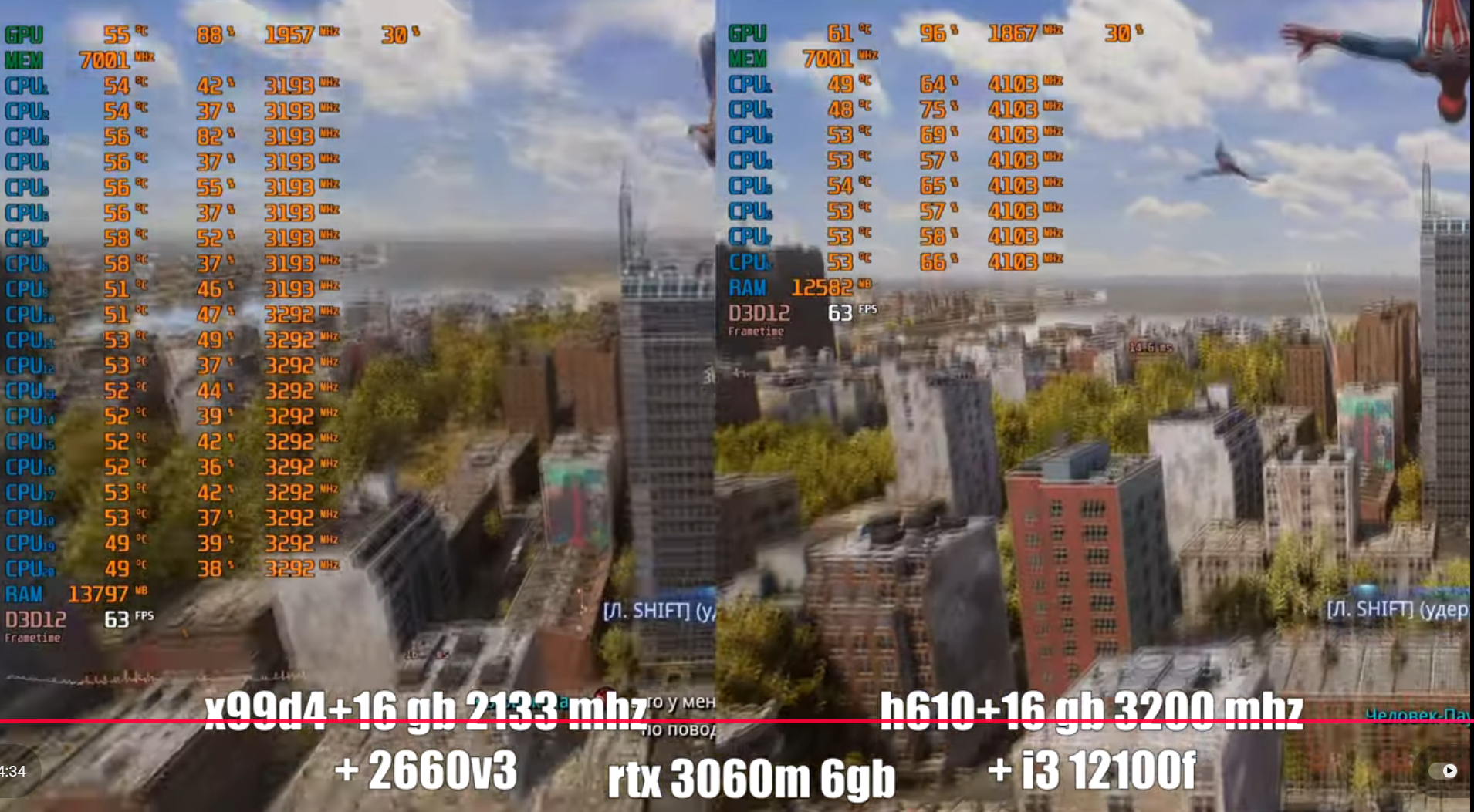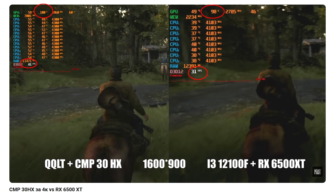 >Но по серегиному видео прекрасно видно >Особенно в играх с высоким фпс, то есть соревновательными. Провел расследование этого утверждения. Что 5500хт это как 6500хт, а тесты с 6500хт есть у продай-дорого. И по сути других аргументов нет. Котра2, действительно у 6500хт фпс больше, но видеокарты сильно недогруженные и в видео показан тест процессоров. Пабг, видеокарты имеют 90%+ загрузки, не полная загрузка. Процессоры показывают неравномерную загрузку по ядрам, что для пабга характерно, и имеет место быть упор в одноядерную производительность\пропускную памяти(кп), а так же видно, что идет разное видео(с разных каток) и возможно на разных настройках. Отдельно посмотрел сравнение процессоров в пабге, 12100ф за счет синглкора, заметно лучше 6тиядерника скайлейка. А вот ластуха упор в видюху, 41фпс против 31, это и будет реальная разница по видеокартам.