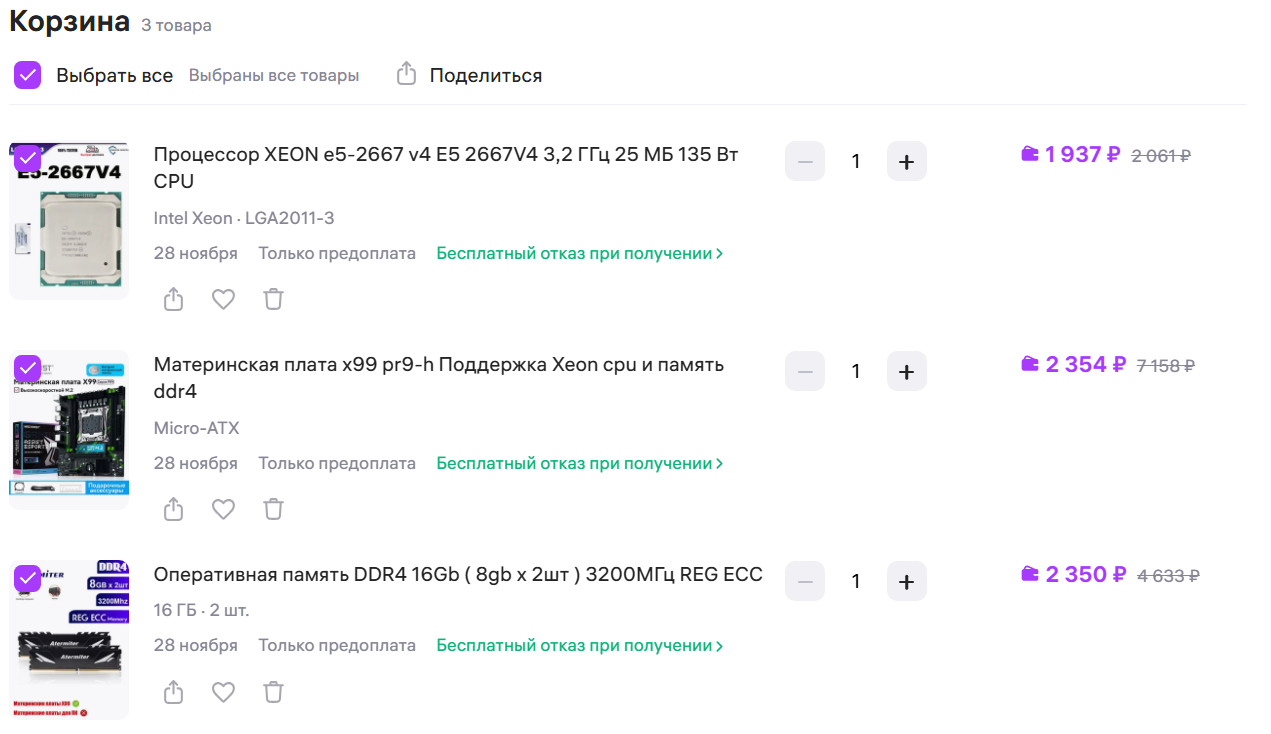 Не нужно сравнивать б/у комплектуху с новой. ай3 "вотпрямщас" можно взять за 3.5, объявления за 3к зарезервированы, но не думаю что будет сложно поторговаться и забрать за 3к. С мамками та же тема.