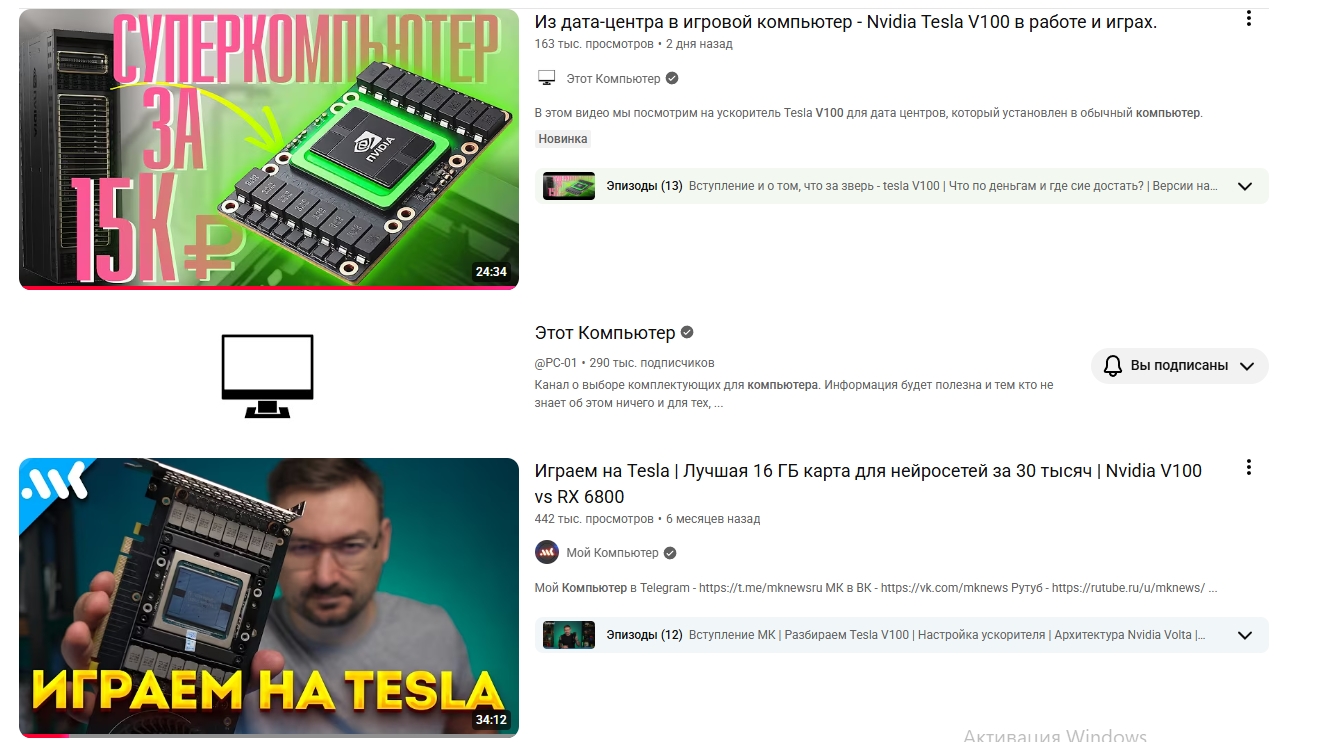 >>7559427 По нейронкам только в скользь знаком, чисто из любопытства видео смотрел, но как стартовая инфа будет полезно. v100 за 15к топ кража для нейронок, для игр +- сойдет, но она скоро отыквится и может подешеветь еще больше. п106-100 6гигов(1066), п 104-100 8гигов (1070) п102-100 10гигов(1080ти) , для нейронок минимум, тесты у МК. п106-100 для игр топ кража, остальные мусор. цмп50 10гиго 2080ти, цмп90 3070ти 10гигов, для игр полный мусор, для нейронок не знаю. А, что там дальеш, уже хер зхнает.