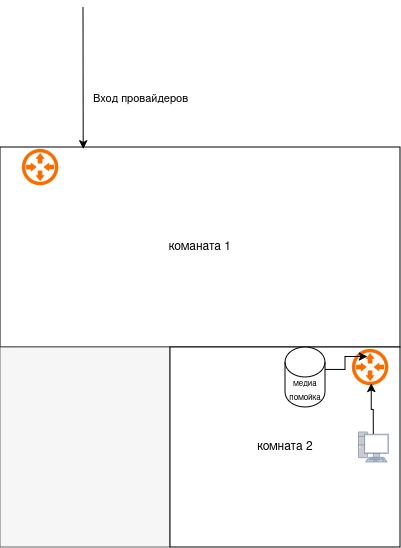 Сап, Посоветуйте железо под стелующий сетап. Есть квартира, провайдеры входят в самое начало одной из комнат. Компютер и файлопомойка стоят в другой очень отдаленной комнате через 3 стены. Прокинуть провод от входа до дальней комнаты нет возможности. Сейчас думаю над чем-то вроде пикрил. При этом я хочу, чтобы комп и сервер были подключены проводом.