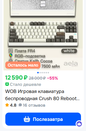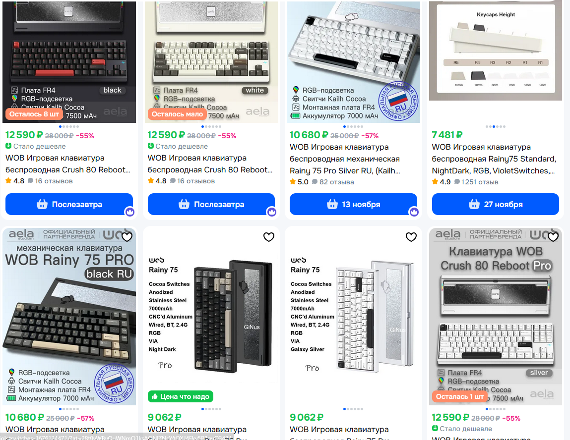 Заказал, надеюсь приедет быстро и не кирпич, вроде указано со склада в москве, да и возврат можно оформить по человечески. Пойду, пока, распаивать свичи из своей полурбочей каловиатуры, благо кейкапы у меня уже есть более менее нормальные. В одном из прошлых тредов тут чел был который это тоже покупал? или просто ссылку оставлял, отзовись, как оно ваще?