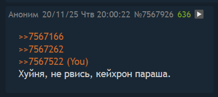 Кароч, я починил клавиатуру, одну из двух, вторую убил нахуй походу, потому что даже при отсутствии свитчей в плате оно все равно высерало всякие тайные послания инопланетян или рептилоидов. Видимо купание в растворителе и последующая неделя откисания в пакете помогло ее оживить, все кнопки жмутся, подсветка робит, заебись. Одна беда, я уже заказал на авитыче другую, такую же что мертвая, но проводную версию, т.к. в ней стоят друие свитчи в отличие от беспровода. Что бы мне тут не писали, хоть это и красный квадрат но мне нравится как оно звучит, т.н. тъхок присутствует, или клак, хуй знает, но звучит приятненько. Она кстати продается, 1500, но тут она вряд ли кому-то нужна.