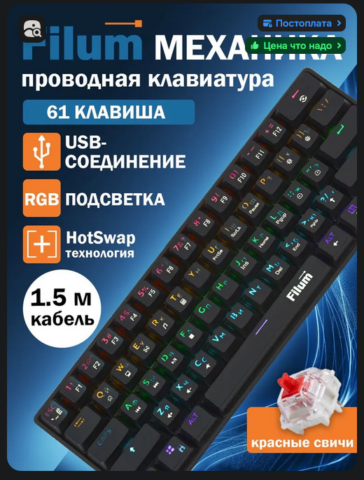 Базовый уровень знаний: https://habr.com/ru/post/140454 Лучшая клавиатура в пределах 6к: Mchose = Aula = Ajazz = Epomaker = Leobog. Выбирай нужный форм-фактор, смотри что дешевле.