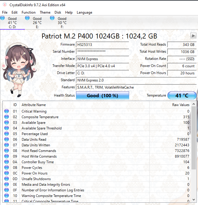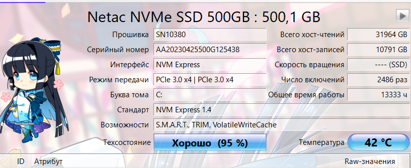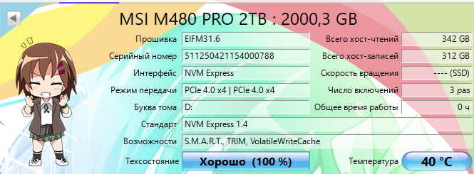 Причем у накопителя еще и в смарте завышаются данные записи/чтения где-то в 30 раз, по самой работе пока проблем не наблюдаю. Вскрыл бы, но просру гарантию.