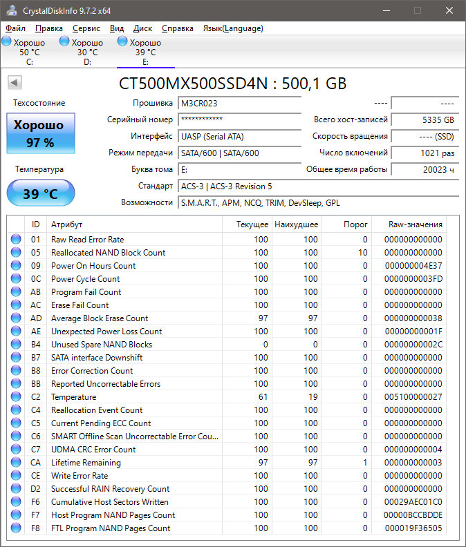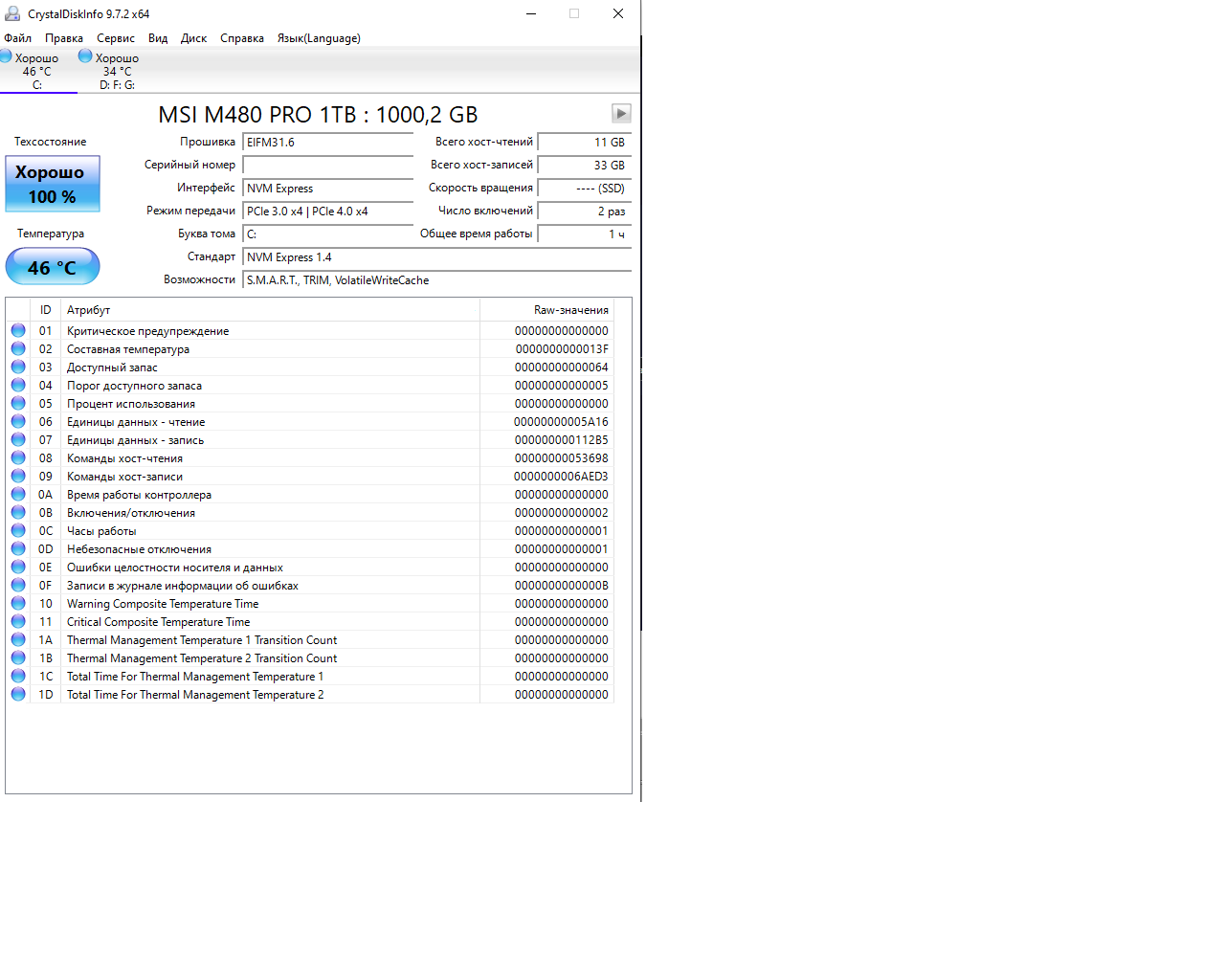 При вопросах о состоянии ссд по смарту переключай программу Crystal DiskINFO в десятичный режим! (ОП-пик №2)!