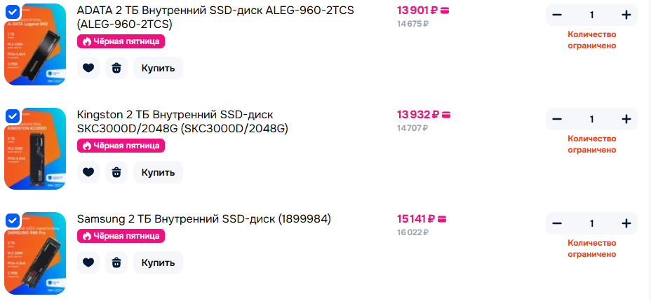 В шапке половина ссд из раздела середнячок или отсутствует в продаже больше года или стоит почти как категория выше. Ну и в целом цены ебанутые.