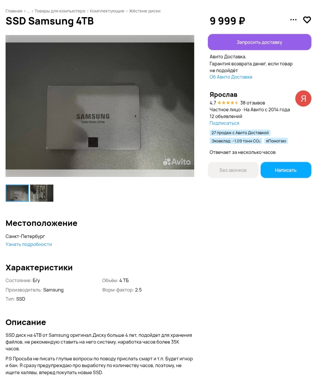 >>7596690 >>7596712 лучше уж вот так, мне эти 2тб не влупились + впадлу 22к тратить. тот же продаван. но возвраты на ягодной помойке это да... пусть и пишут, что оригинал, но веры дебилоидам из отзывов нет