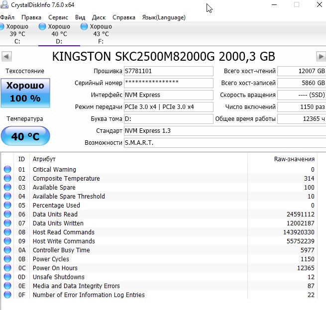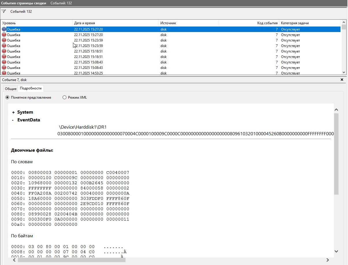 500 гб где ошибки С7 в формате букв уже - я его пытался подключить, но он не заводился (вечная загрузка виндовс) и отложил, с подходом, не завелась, буду копать позже. Типа помнил, что он проблемный.
