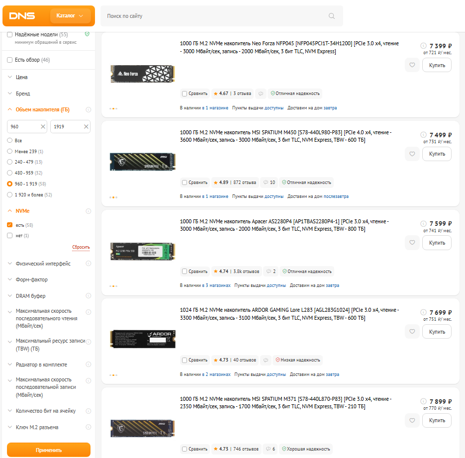 1. Новый, из сетевого магазина, при таком условии, увы, но любой, от которого у тебя самого не будет отвращения, потому что до условного KC3000 и 990 Pro, всё будет рандом. Просто задаешь параметры, сортируешь по цене и не паришься никакими характеристиками.