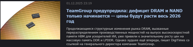 На этом фоне эксперты также предупреждают, что дефицит памяти, включая оперативную, может тянуться до 2028 года, потому что производители всё больше фокусируются на серверах и ИИ;