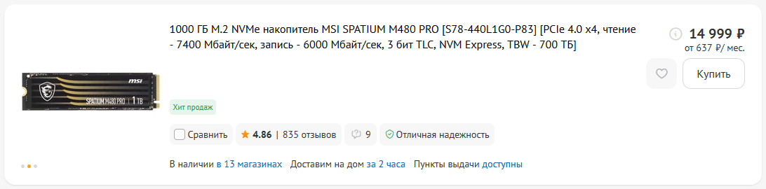 Блеать, хотел докупить nvme на 1000г в комплект к ссд на 1000г, но видимо не судьба
