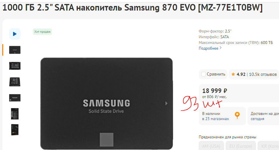 93 штуки только 1 Тб на весь ебаный миллионник, только в днс. Никто не покупает. К чему все приготовились, поднимая цены? Типа ща все побегут раскупать, а они такие - хоба, и новыми закупились, чтобы также их продавать?
