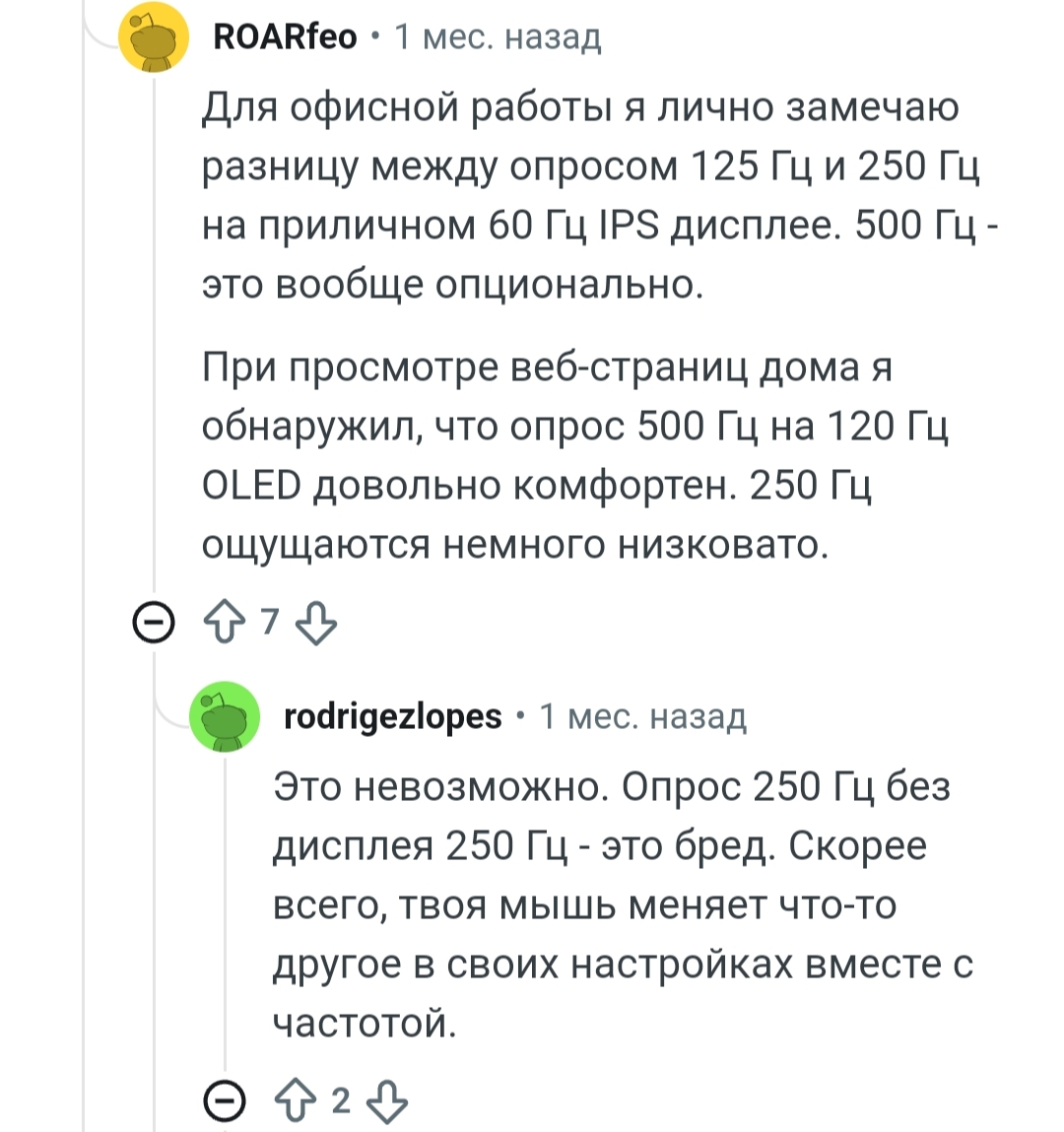 >>7560875 зависит от игры. в кс например высокие значения бесполезны. да и 280 гц мало. так что ставь 1к и не еби мозг, с высокой частотой опроса быструю разрядку разве что почувствуешь