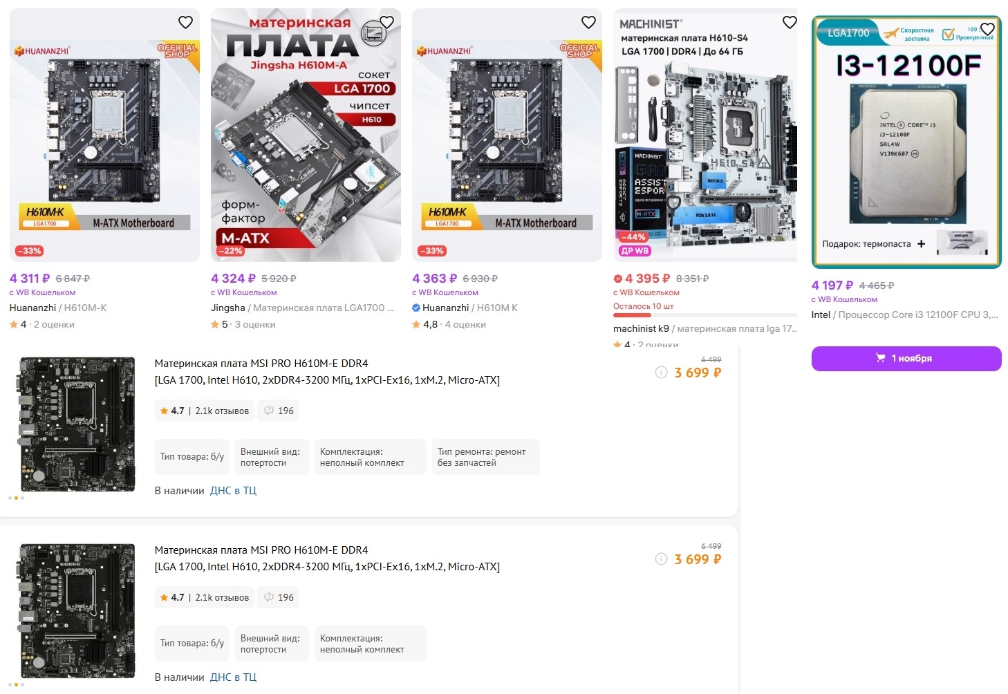 Ладно бы только оперативка туземун, я на сайт днс последнее время захожу поохуевать просто. 5600 -10к, 5600x - 11300, 12100 - 7800, 12400 - 13300, 13400 вообще космос, хотя летом за 10к отдавали! Мамку с неублюдочным врм купи - 10к ++ тож отдай. Какая-нибудь 6600 жопный камень эдишн - 24к. Типа вот она новая, ток с завода же. Ток ей красная цена 18к. Ну ок, 5050 хуита и говно, оно понятно, но за неё-то просят 26к, а не 32 же! И да, авито, сука, перестроился моментально. Рыночек порешал. Реально, таким манером зионщики со своими комплектами за 7-10к всех победят. И 3070m сверху. Топ за свои деньги, хуле.