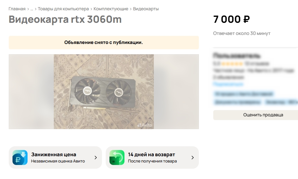 Для тестов купил 3060м. Можете оставлять реквесты. Цена 7к, продавец поставил 14 дней возврата. Интересный факт, если стоит время на возврат, то нельзя оплачивать кошельком, а значит нельзя получить скидку на доставку и нельзя выбрать дешевый 5пост(его бы и так не выбрал, там вскрывать нельзя). 7000р карта 400р доставка, 600бонусов кешбека для доставки, и 1%(74р) кешбека с озон карты. Итого почти 6.7к. Карта на пломбе, ни разу не обслуживалась, под кулерами буквально валенок, вскрывать страшно.