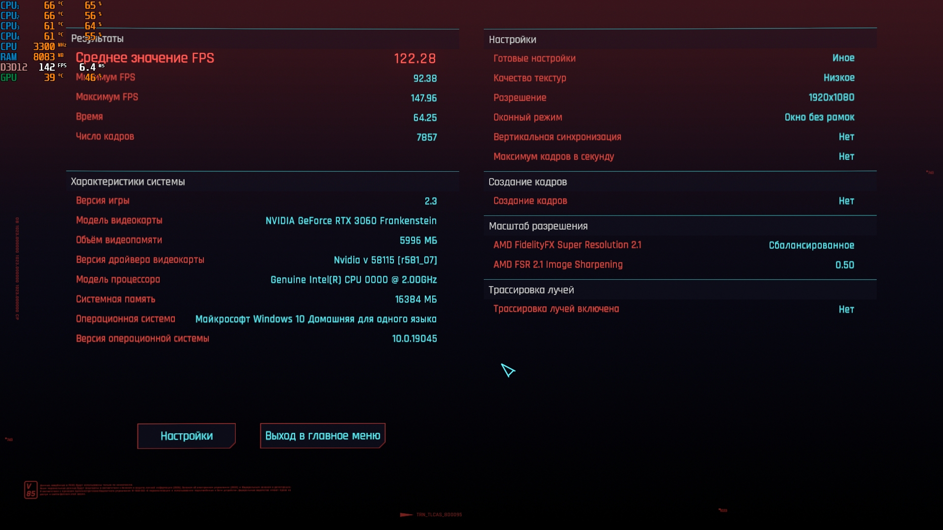 Бомж-бенчмарк-тред. Для понимания, на что сборки способны на практике, собираем результаты в бенчмарке киберпанка 2077. Игру качаем с рутрекера, портабл(148.8гб), настройки минимальные с изменением фср2.1 на баланс. Например благодаря этому тесту, видно, что производительность рыкса+4\8 = 4\4+п106-100, профита от 4\8 нет, т.к. упор идет в карту, но при этом сборка с п106 выходит дешевле.