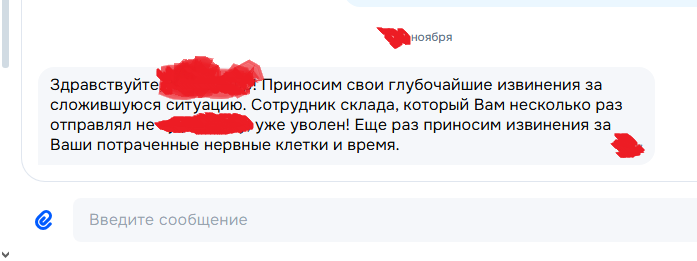 >>7564821 Анон, тебе не стыдно что из-за твоих жалоб человека уволили? Он, наверное, не от хорошей жизни на складе работает. Где он теперь работу найдет? А у него, наверное, есть семья, дети...